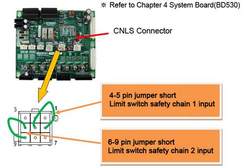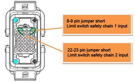 Please jumper short the pins that are related to the limit switch’s input from a CNLS connector as shown below. At this stage, please check the limit (Over-Travel) from the Private input signal monitoring windows.