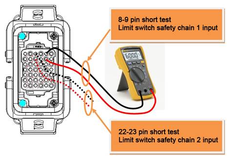 Please remove CEC1 Wire Harness, and jumper short the pins that are related to the limit switch from a CEC1 connector which is attached to a controller. At this stage, please check the limit (Over-Travel) from the Private input signal monitoring windows.