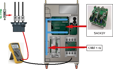 Servo Drive Unit that drives the motor receives a command from the Servo Board (BD542) through CNBS cable, and the current output of internal amplification circuit will be transferred to the motor through wirings that connected to each connectors of axis.