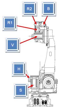 Figure 1.54 Locations of each axis’s motor (HS165 Robot)