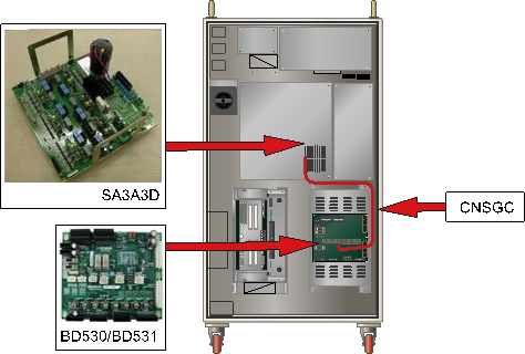 AMP overvoltage error is detected by the servo drive unit when the DC power (P-N) to the servo drive unit exceeds the set level. Detected error will be sent through CNSGC cable to be handled by BD530/BD531 board.