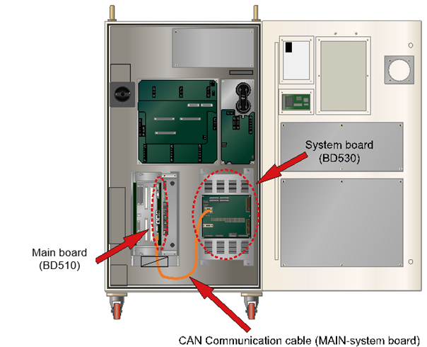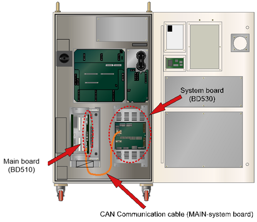 Figure 1.22 CAN communication cable connection between a main board (BD510) and a system board (BD530)