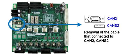 In order to remove a user’s module CAN communication from a controller, please unplug the CAN2 and CANS2 connectors from a System Board as below diagram. If you restart the controller, only a Main Board and System Board will keep the CAN communication.