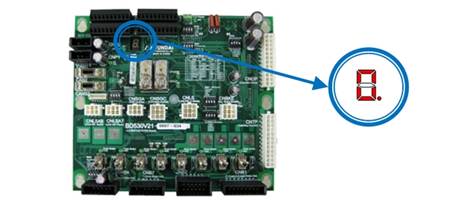 System Board has a 7-segment that indicates a various status. By examining it, you may determine if a System Board is malfunctioning or not. After a controller has been restarted, if the indicator does not display the content in a rotation as below, System Board malfunction is suspected. Please replace it.