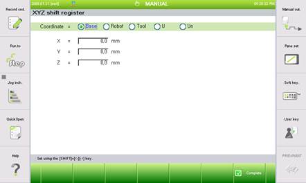l The change in the XYZ shift register during the operation of the robot is to be reflected when the next execution is implemented, once after the operation of the robot stops.