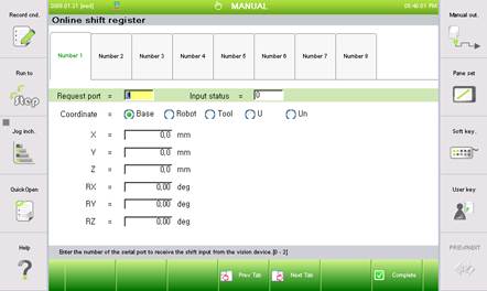 On-line shift register group stores shift amount received from external devices or palletizing length and spin value. There are eight groups in total.