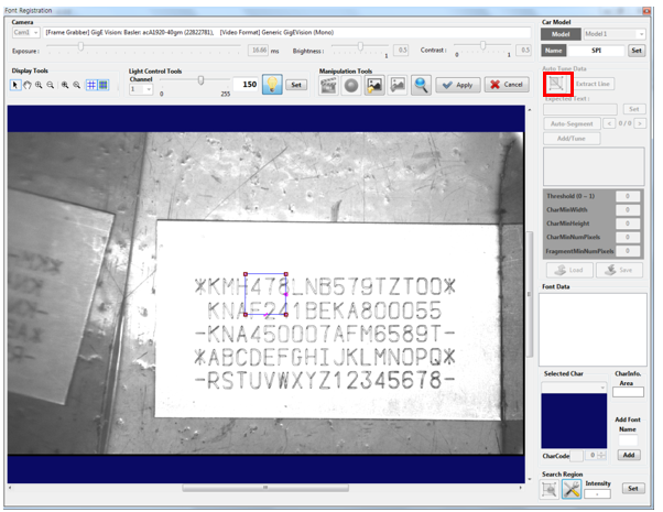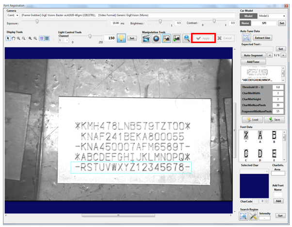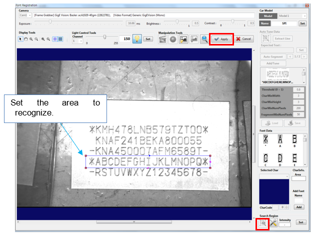 Position the rectangle on the character area to register a font, and then click the [Apply] button.