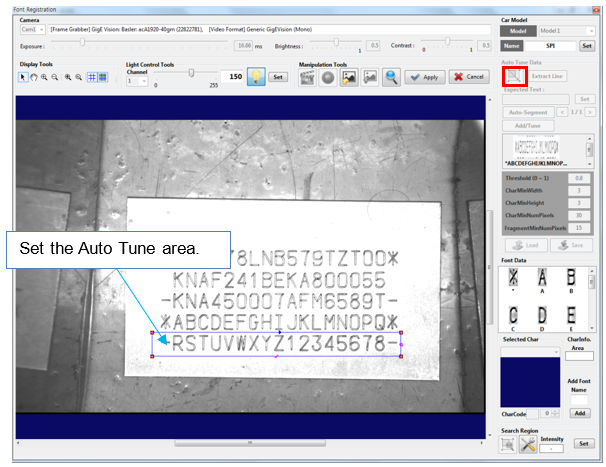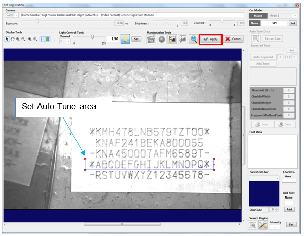 Click the [Setup Character Region] button of Auto Tune Data. Position the rectangle and then click the [Apply] button.