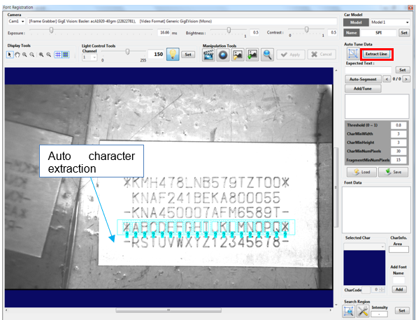 Click the [Extract Line] button to automatically extract characters in the defined area according to currently defined character recognition variables.