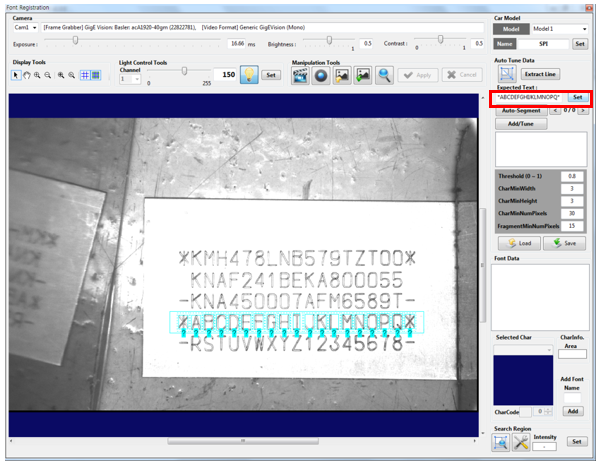 Enter letters for recognized characters into the [Expected Text] item and then click the [Set] button.