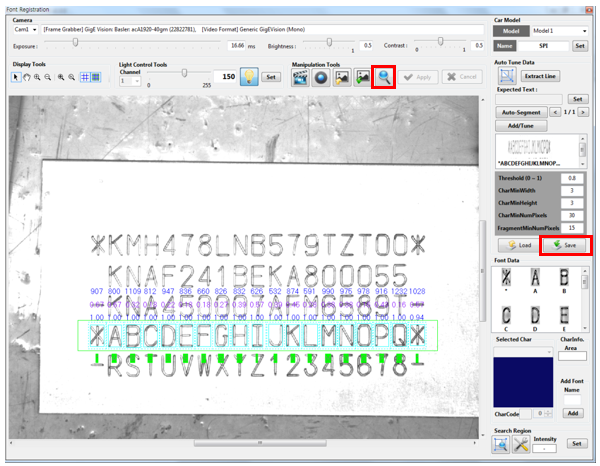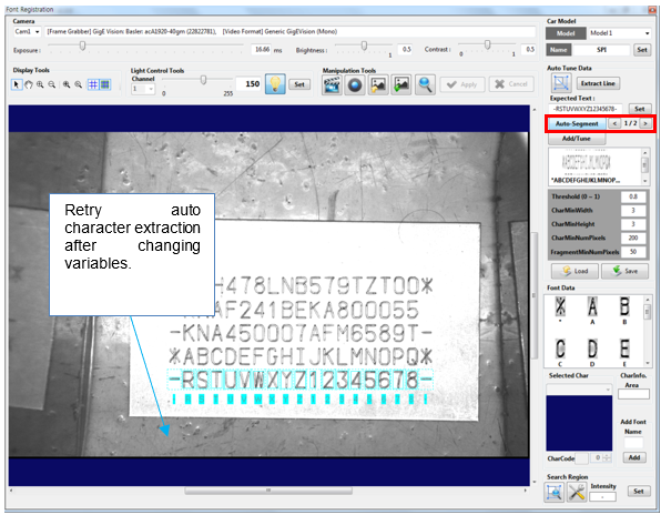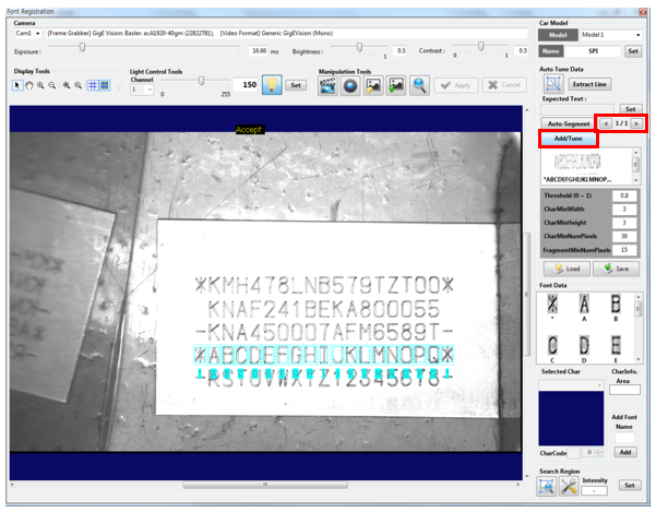 Several [Auto-Segment] results may be output as follows: Click the left/right arrow to select results within the character area, and then click the [Add/Tune] button to register fonts.